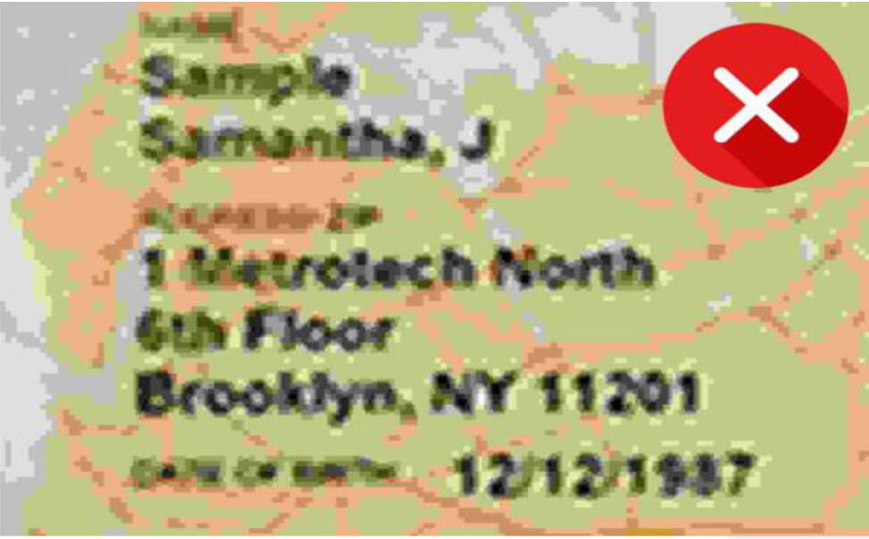 Para lograr una buena calidad de reconocimiento de documentos de identificación, le recomendamos que proporcione imágenes capturadas por una cámara con una resolución de al menos Full HD (1920×1080) y enfoque automático.
